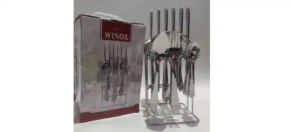 Juego Cubiertos Acero Inoxidable 24 Piezas Winox ~ DESCRIPCION Son cubiertos clásicos, resistentes y que pueden ir al lavavajillas diariamente, debido a que las piezas son producidas en acero inoxidable; además, su espesor hace que las piezas no deformen. Con los WINOX sus momentos a la mesa serán inolvidables! ~ CARACTERISTICAS • Material Acero Inoxidable • Diseños exclusivos • Cubierto completamente metálico • Elegantes diseños y lujosos para la mesa • Base en Acero Inoxidable • Alta Calidad ~ QUE TE INCLUYE • 6 Cucharas, • 6 Tenedores, • 6 Cuchillos, • 6 Cucharitas dulceras