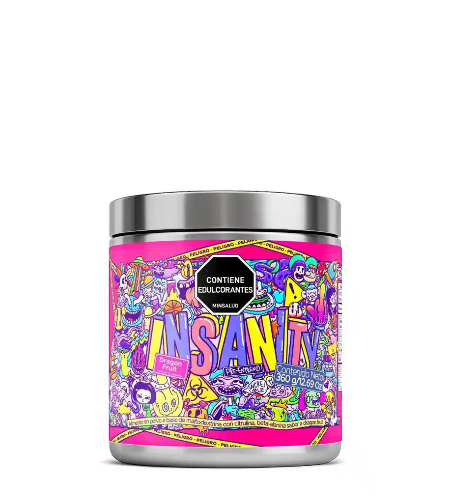 Insanity Dragon Fruit IMN es un preentreno formulado para maximizar energía, enfoque y rendimiento durante tus rutinas. Contiene ingredientes activos que incrementan la fuerza y la resistencia. Producto registrado por Invima. Presentación: Tarro por 300 g.