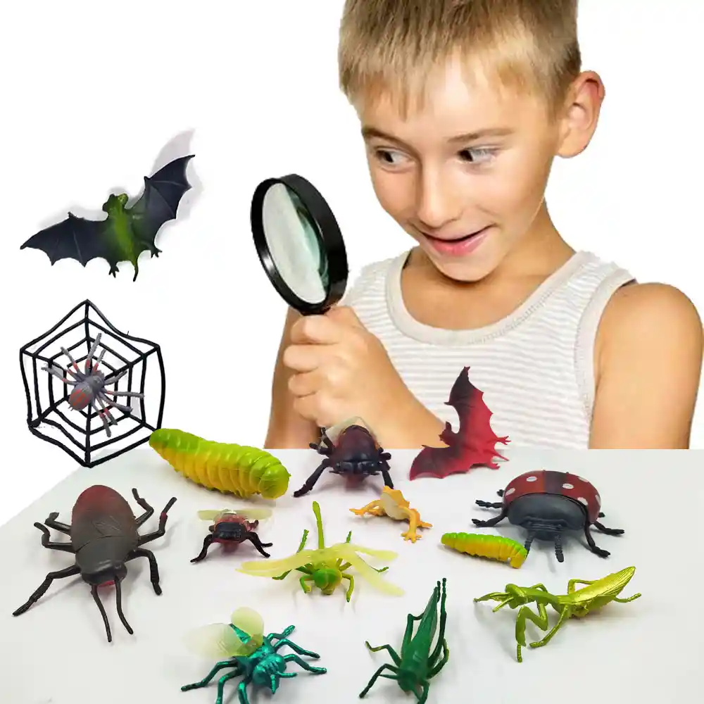 SET FIGURAS INSECTOS X15 PCS Deja que tu pequeño se interesé en la vida animal jugando con este espectacular set de insectos elaborados con detalles realistas para que tu pequeño empiece a conocer un poco mas de estos animalitos que son vitales para nuestro ecosistema. Contenido Paquete: 15 Figuras diferentes. Medidas Insectos: Entre 5 y 12 cm de Largo dependiendo de cada una de las figuras. Medida Empaque: 24 cm de Alto x 18 cm de Largo x 5 cm de Fondo. Material: ABS (Plásticos). Los juguetes siempre han desempeñado un papel importante en la vida de los niños, siempre considerando los gustos y deseos de los más pequeños de la casa y no tan pequeños, procurando dar la mejor de las sorpresas y ganarse esa sonrisa incomparable que los llena de felicidad. Juguetes, cuentos, y cualquier producto orientado a la satisfacción y desarrollo de los niños. Diversión, entretenimiento y aprendizaje