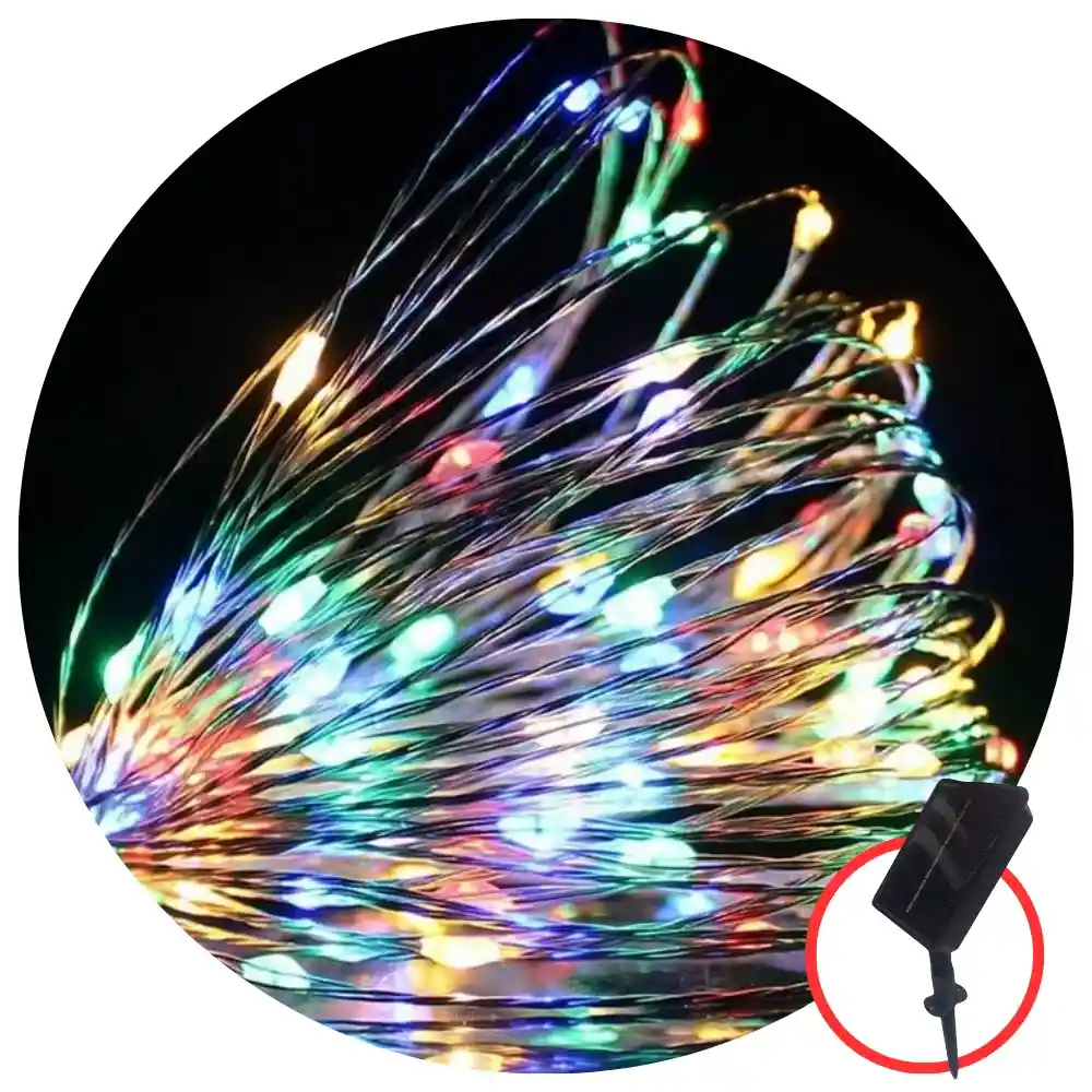DESCRIPCIÓN: Guirnalda de luces solares impermeables de 200 leds para exteriores, con modos de iluminación, luces de alambre de cobre para patio, patio, vacaciones, bodas de Navidad. CARACTERÍSTICAS DESTACADAS: Color disponible: MULTICOLOR Super brillo: 0603 SMD LED de alta calidad, de alta intensidad y fiabilidad, 200 luces LED, larga vida útil 10.000 horas. Segura: bajo consumo y funciona con energía solar están obligados a trabajar. de bajo consumo (150mA, 2 V) y alambre de cobre con aislamiento de calor y lo protege de sobrecalentamiento después de uso, seguro para tocar con las manos desnudas. Impermeable: Índice de impermeable: IP 67 para luces, IP44 para panel solar, apto para uso interior/exterior. Flexible y fácil de instalar: Delgado, compacto y flexible tira de luz.. Ideal para el hogar y los negocios luz decoración. respaldo autoadhesivo con cinta adhesiva para aplicación segura y sencilla. adecuado de aplicar para joyería tienda, tiendas, exposiciones, escaparates, gabinete, telón de fondo, tiendas, decoración de signos de publicidad, fina, hogar y otras ocasiones. Funciona con energía solar: alimentado por energía solar, 4 – 6 horas de energía solar Carga puede durar 10 horas de aplicación.