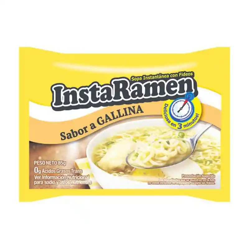 Sopa instantánea con fideos, no contiene ácidos grasos trans. Es muy fácil y rápido de preparar y te salvara de cualquier apuro en la cocina