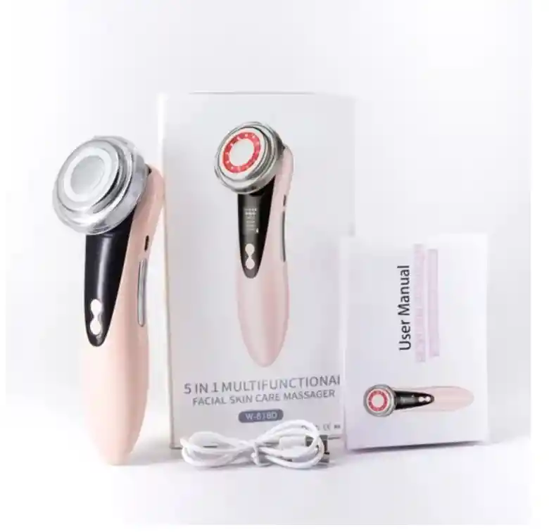 Especificación: 1. Nombre del producto: masajeador Facial 2. Potencia: 4W 3. Voltaje nominal: DC5V 4. Voltaje: 3,7 V 5. Batería: batería de litio de 500mAh 6, Material:ABS 7. Tiempo de carga: 2-3H Función: Limpieza Facial y máquina tonificante Es un instrumento de belleza facial que puede limpiar, activar y refrescar profundamente la piel, mejorar el contorno facial e integrar iones positivos y negativos + cálido + ligera vibración + luz roja y azul * Iones positivos y negativos: utilizando el principio de que los iones de carga positivos y negativos se atraen entre sí de una manera diferente, la suciedad en los poros profundos se puede extraer por corriente biológica y limpiar completamente; los ingredientes cosméticos están permeados en la base muscular mediante la introducción de iones. * Vibración: la vibración mecánica y la estimulación del voltaje pueden ajustar la piel, aumentar su elasticidad y mejorar el metabolismo de las células de la piel.