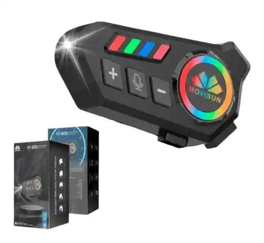 Intercomunicador Para Casco Movisun KY-600 - Bluetooth 5.0 y Linterna Mejora tu experiencia en la vía con el Movisun KY-600, el aliado perfecto para motociclistas que buscan comunicación clara, seguridad y autonomía. Este dispositivo combina tecnología de audio avanzada con funciones prácticas únicas como linterna integrada y alta resistencia al clima. Audio y Comunicación de Alta Calidad Sonido Premium: Equipado con un altavoz de alta calidad para una experiencia de audio nítida. Reducción de Ruido: Tecnología diseñada para filtrar el sonido ambiental y del viento, permitiendo llamadas más claras. Micrófono Integrado: Optimizado para comandos de voz y comunicación fluida. Bluetooth 5.0: Conectividad estable y de bajo consumo para tu smartphone. Autonomía y Rendimiento Batería de Larga Duración: Hasta 14 horas de uso continuo, ideal para viajes largos o jornadas extensas de trabajo. Protección OVP: Sistema de protección contra sobretensiones para una carga segura. Funciones Especiales y Diseño Linterna LED Frontal: Una herramienta de seguridad adicional indispensable para situaciones de poca luz o emergencias en la vía. Certificación IP56: Resistente al polvo y a chorros de agua potentes, ideal para conducir bajo la lluvia sin preocupaciones. Compatibilidad Total: Funciona perfectamente con dispositivos iOS y Android. Diseño Ergonómico: Botones de gran tamaño (+, -, Micrófono) diseñados para ser operados fácilmente incluso con guantes. Iluminación RGB: Anillo de luz dinámico que le da un aspecto moderno y tecnológico a tu casco. Especificaciones Técnicas Modelo: KY-600. Duración: 14 Horas. Protección: IP56. Versión Bluetooth: 5.0.