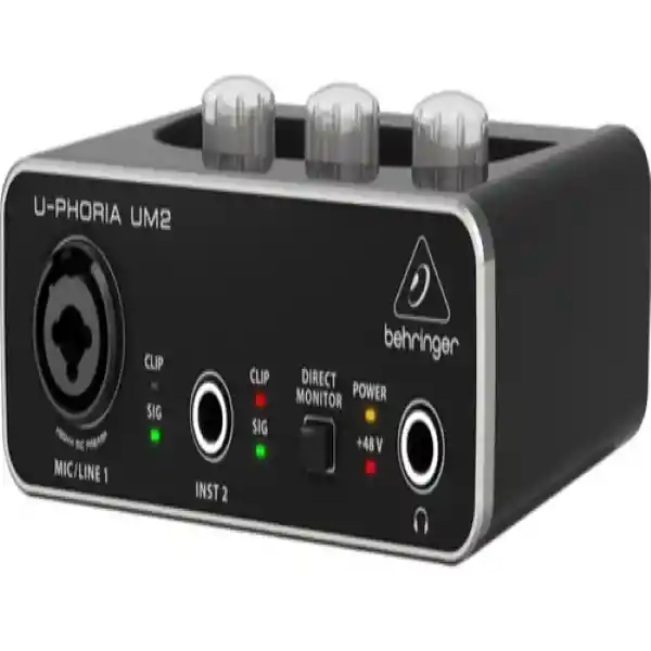 nterfaz de audio USB 2 x 2 para grabar micrófonos e instrumentos Resolución de 48kHz para calidad de audio excelente Compatible con software de grabación incluyendo Avid Pro Tools, Ableton Live, Steinberg Cubase y más Dos salidas y dos entradas con latencia ultrabaja a su ordenador, compatible con Mac OS X y Windows XP o superior Preamplificador de micrófono de +48V comparable con preamplificadores boutique Puerto USB para conectividad y suministro Software de grabación, edición y podcasting gratuito más plugins de efectos que pueden descargarse en Behringer.com Diseñado en Alemania Especificaciones Preamplificador de entrada: 1x Xenyx Conectores de entrada: 1x XLR/TRS Combo (Mic/Line) 1x 1/4 '' TRS (instrumento) Entrada de respuesta de frecuencia: 10 Hz 30 kHz (0dB /0.5dB) Impedancia de entrada de micrófono/línea: 3kO/1MO Nivel máximo de entrada: Mic: + 2dBu Línea: + 22dBu Instrumento: + 2dBU Alimentación phantom: + 48V, conmutable Conectores de salida: Estéreo de 1x 1/4 '' (teléfonos) 2 x RCA (Line Out) Rango dinámico: 100 dB, con ponderación Control: Selector de Monitor directo Admite velocidades de muestreo: 32kHz/44.1kHz/48kHz Conector USB: Tipo B Sistemas compatibles: Mac OS X y Windows XP o superior Fuente de alimentación: Conector USB Busalimentado a través de ordenador Dimensiones: 46.45 mm x 128 mm x 118 mm (Altura x Ancho X Profundidad) Peso: 0,3 kg/0,6 kg