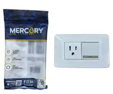 INTERRUPTOR MAS TOMA MERCURY Tiene una corriente nominal de amperios de 15A y una tensión nominal en voltios de 127W, cuenta con una alta durabilidad para un uso interior y residencial