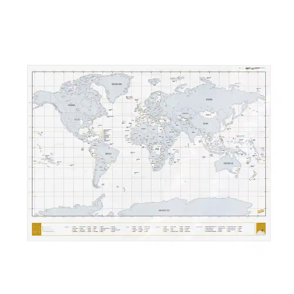Este Póster Del Mapa Mundial de Scratch Map de Edición Clara Esta Impreso en Acetato Transparente y Funciona de Manera Opuesta a Todos Los Demás Mapas de Scratch Map. Cuando ha Visitado un País, en Lugar de Revelar Colores Debajo de la Lámina Extraíble, Los Lugares Que ha Visitado Desaparecen, Medidas: 59.4 x 82.5 x 0.2 cm