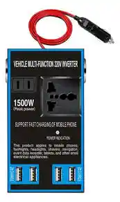 Inversor de corriente 1500w, 4 puertos usb, 1 entradas DCV, 2 entradas DCV con polo a tierra