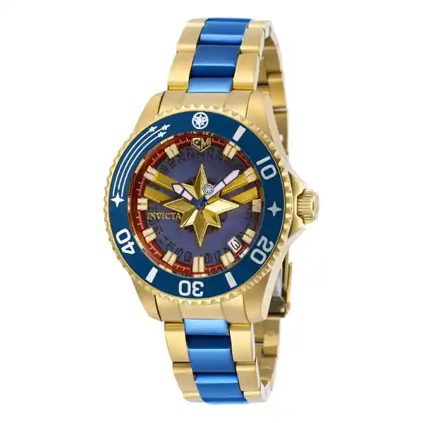 Dama Material: Acero Inoxidable Modelo: 28907 Color Pulso: Dorado Azul Material P: Acero Inoxidable Colección: Marvel Tono Caja: Oro Material Caja: Acero Inoxidable Tablero: Azul Transparente Cristal: Mineral Ancho Banda: 18 Largo: 205 Resistecia al Agua: 200 Size Caja: 38 Tipo de Reloj: Quartz