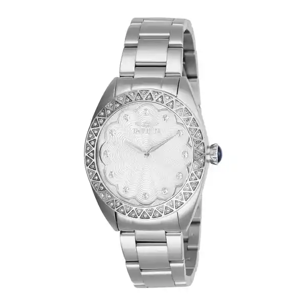 Dama Material: Acero Inoxidable Modelo: 28827 Color Pulso: Acero Material P: Acero Inoxidable Colección: Wildflower Tono Caja: Plata Material Caja: Acero Inoxidable Tablero: Plata Cristal: Flame Fusion Ancho Banda: 18 Largo: 172.5 Resistecia al Agua: 100M Size Caja: 35 Tipo de Reloj: Cuarzo