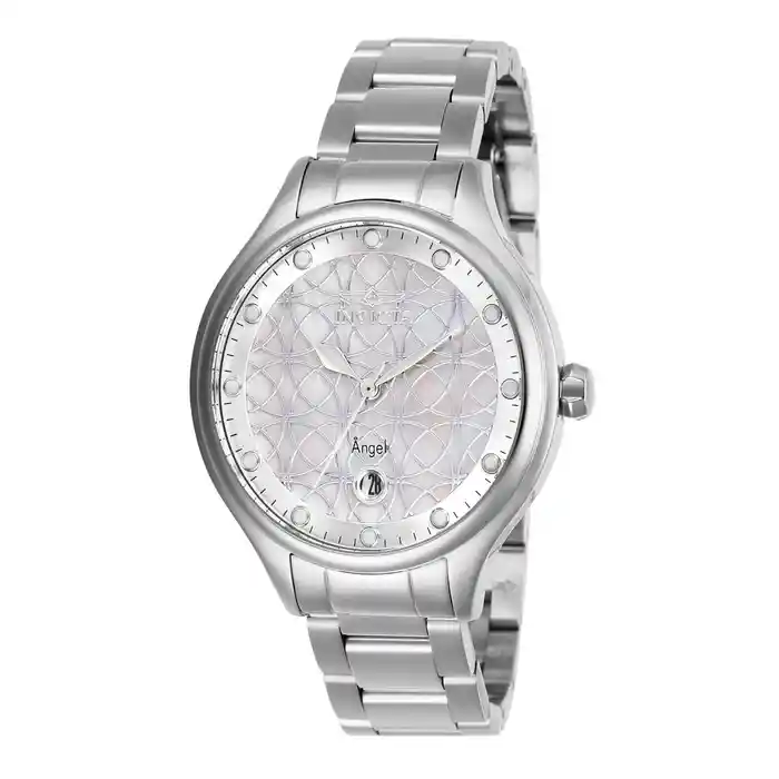 Dama Material: Acero Inoxidable Modelo: 27438 Color Pulso: Acero Material P: Acero Inoxidable Colección: Angel Tono Caja: Acero Inoxidable Material Caja: Acero Inoxidable Tablero: Blanco Cristal: Flame Fusion Ancho Banda: 16 Largo: 172.5 Resistecia al Agua: 100M Size Caja: 38 Tipo de Reloj: Cuarzo