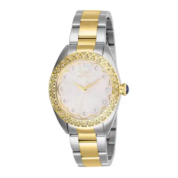 Dama Material: Acero Inoxidable Modelo: 28828 Color Pulso: Acero Dorado Material P: Acero Inoxidable Colección: Wildflower Tono Caja: Acero Inoxidable Material Caja: Acero Inoxidable Tablero: Plata Cristal: Flame Fusion Ancho Banda: 18 Largo: 172.5 Resistecia al Agua: 100M Size Caja: 35 Tipo de Reloj: Cuarzo