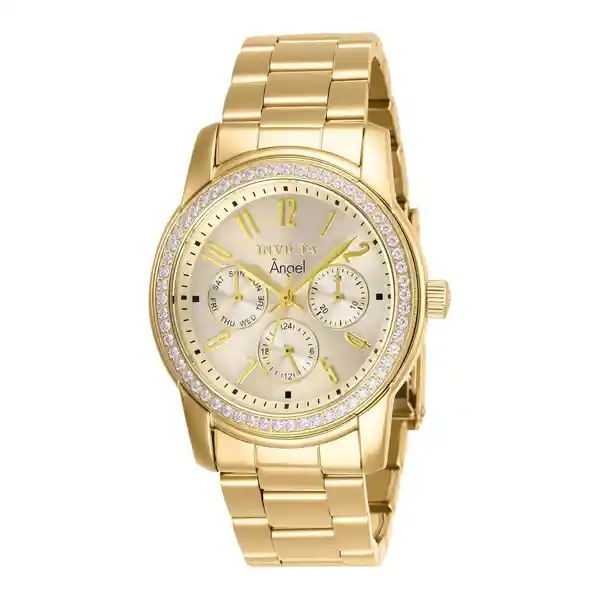 Dama Material: Acero Inoxidable Modelo: 17020 Color Pulso: Oro Material P: Acero Inoxidable Colección: Angel Tono Caja: Oro Material Caja: Acero Inoxidable Tablero: Oro Cristal: Flame Fusion Ancho Banda: 20 Largo: 210 Resistecia al Agua: 50 Size Caja: 38 Tipo de Reloj: Quartz