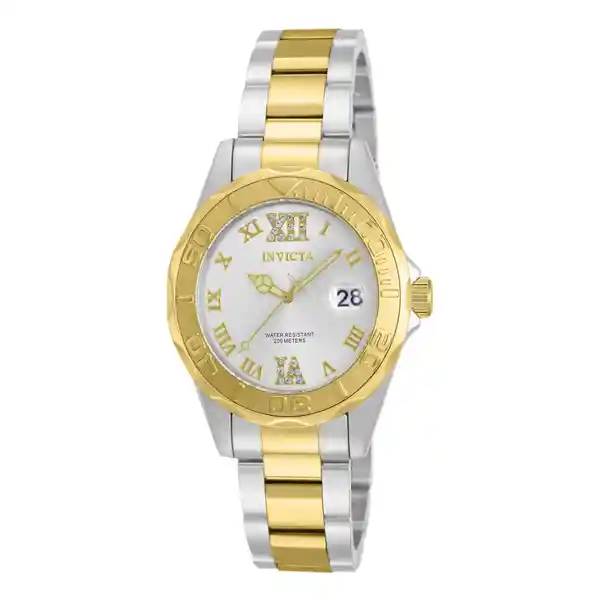 Dama Material: Acero Inoxidable Modelo: 12852 Color Pulso: Acero. Oro Material P: Acero Inoxidable Colección: Pro Diver Tono Caja: Oro. Acero Material Caja: Acero Inoxidable Tablero: Plata Cristal: Mineral Ancho Banda: 18 Largo: 180 Resistecia al Agua: 100 Size Caja: 38 Tipo de Reloj: Quartz