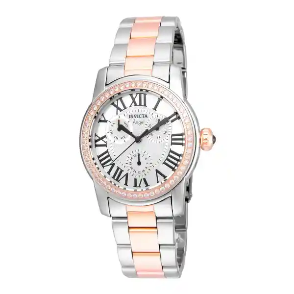 Dama Material: Acero Inoxidable Modelo: 21708 Color Pulso: Acero. Oro Rosa Material P: Acero Inoxidable Colección: Angel Tono Caja: Acero Inoxidable. Oro Rosa Material Caja: Acero Inoxidable Tablero: Plata Cristal: Flame Fusion Ancho Banda: 20 Largo: 200 Resistecia al Agua: 50 Size Caja: 38 Tipo de Reloj: Quartz