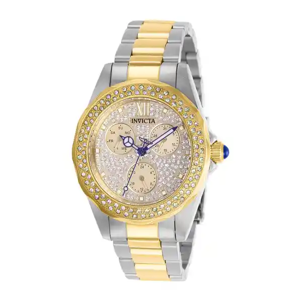 Dama Material: Acero Inoxidable Modelo: 28433 Color Pulso: Acero Dorado Material P: Acero Inoxidable Colección: Angel Tono Caja: Acero Inoxidable. Oro Material Caja: Acero Inoxidable Tablero: Pavé. Blanco Cristal: Mineral Ancho Banda: 18 Largo: 180 Resistecia al Agua: 100 Size Caja: 38 Tipo de Reloj: Quartz