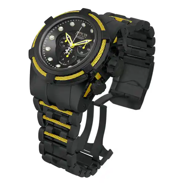 Hombre Material: Acero Inoxidable Modelo: 14063 Color Pulso: Amarillo Negro Material P: Acero Inoxidable Colección: Reserve Tono Caja: Amarillo Negro Material Caja: Acero Inoxidable Tablero: Negro Cristal: Flame Fusion Ancho Banda: 36.8 Largo: 220 Resistecia al Agua: 200 Size Caja: 53 Tipo de Reloj: Quartz