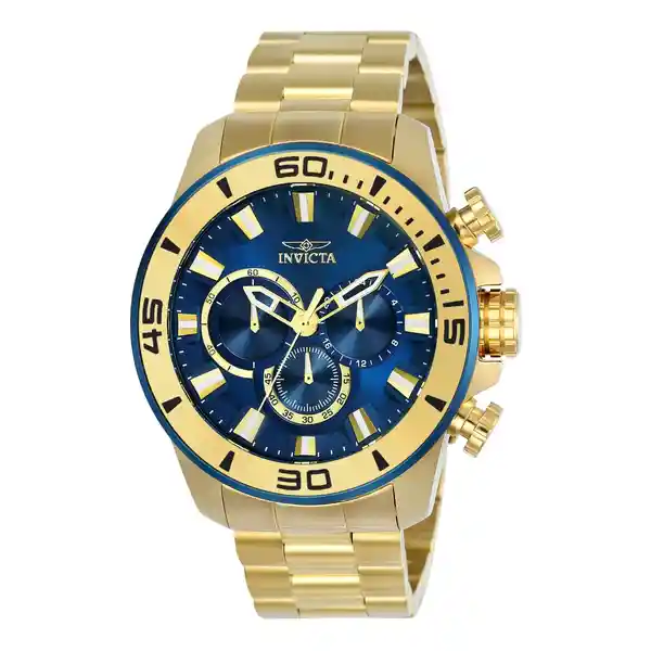 Hombre Material: Acero Inoxidable Modelo: 22587 Color Pulso: Oro Material P: Acero Inoxidable Colección: Pro Diver Tono Caja: Oro Material Caja: Acero Inoxidable Tablero: Azul Cristal: Flame Fusion Ancho Banda: 24 Largo: 185 Resistecia al Agua: 100M Size Caja: 48.5 Tipo de Reloj: Cuarzo