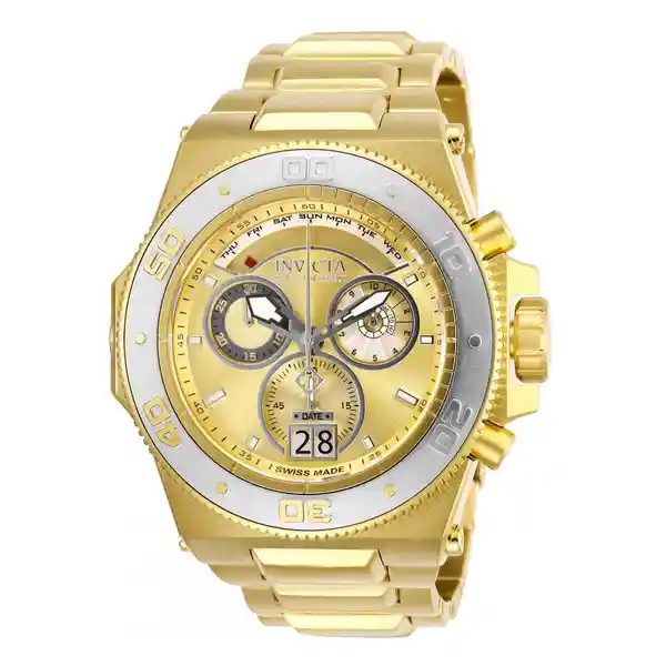 Hombre Material: Acero Inoxidable Modelo: 26053 Color Pulso: Oro Material P: Acero Inoxidable Colección: Akula Tono Caja: Oro Plata Material Caja: Acero Inoxidable. Aluminio Tablero: Oro Cristal: Sapphire Ancho Banda: 32 Largo: 210 Resistecia al Agua: 300 Size Caja: 55.7 Tipo de Reloj: Cuarzo
