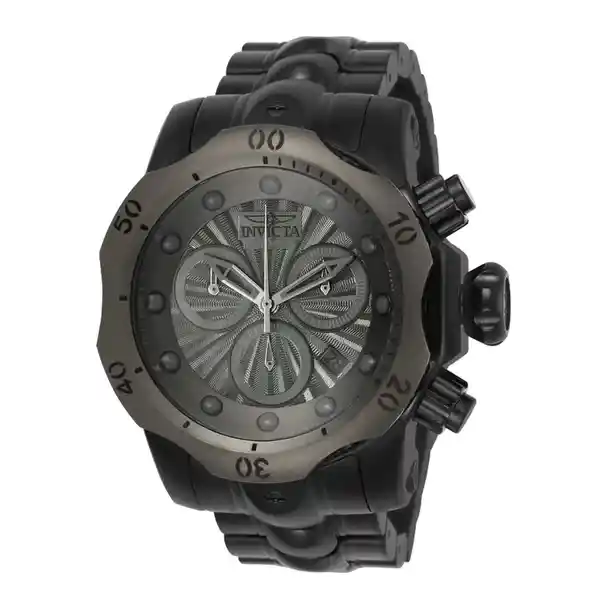 Hombre Material: Acero Inoxidable Modelo: 23899 Color Pulso: Negro Material P: Acero Inoxidable Colección: Venom Tono Caja: Negro. Titanio Material Caja: Acero Inoxidable Tablero: Gunmetal Cristal: Mineral Ancho Banda: 26 Largo: 210 Resistecia al Agua: 1000 Size Caja: 53.7 Tipo de Reloj: Quartz