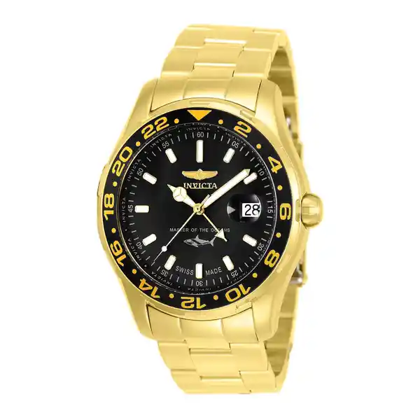 Hombre Material: Acero Inoxidable Modelo: 25822 Color Pulso: Oro Material P: Acero Inoxidable Colección: Pro Diver Tono Caja: Oro Material Caja: Acero Inoxidable Tablero: Negro Cristal: Flame Fusion Ancho Banda: 22 Largo: 215 Resistecia al Agua: 100 Size Caja: 44 Tipo de Reloj: Cuarzo