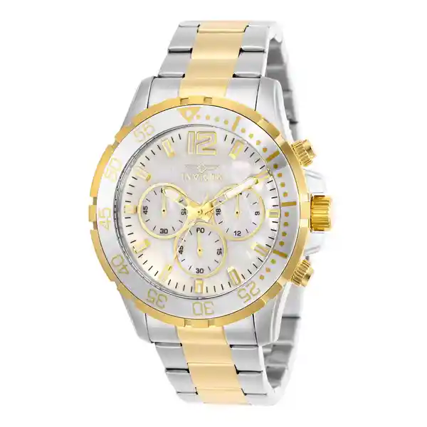 Hombre Material: Acero Inoxidable Modelo: 29462 Color Pulso: Oro Plata Material P: Acero Inoxidable Colección: Pro Diver Tono Caja: Oro Material Caja: Acero Inoxidable Tablero: Blanco Cristal: Flame Fusion Ancho Banda: 22 Largo: 195.5 Resistecia al Agua: 100M Size Caja: 45 Tipo de Reloj: Quartz