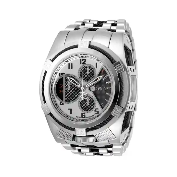 Hombre Material: Acero Inoxidable Modelo: 31623 Color Pulso: Acero Negro Material P: Acero Inoxidable Colección: Reserve Tono Caja: Negro. Acero Material Caja: Acero Inoxidable Tablero: Negro. Plata Cristal: Flame Fusion Ancho Banda: 38 Largo: 210 Resistecia al Agua: 100 Size Caja: 56.3 Tipo de Reloj: Quartz