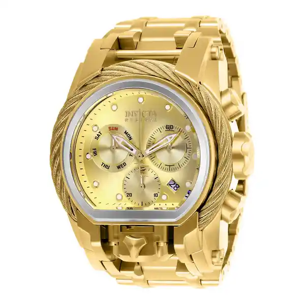 Hombre Material: Acero Inoxidable Modelo: 26586 Color Pulso: Oro Material P: Acero Inoxidable Colección: Reserve Tono Caja: Oro. Acero Inoxidable Material Caja: Acero Inoxidable Tablero: Oro Cristal: Flame Fusion Ancho Banda: 34 Largo: 210 Resistecia al Agua: 200 Size Caja: 52 Tipo de Reloj: Cuarzo