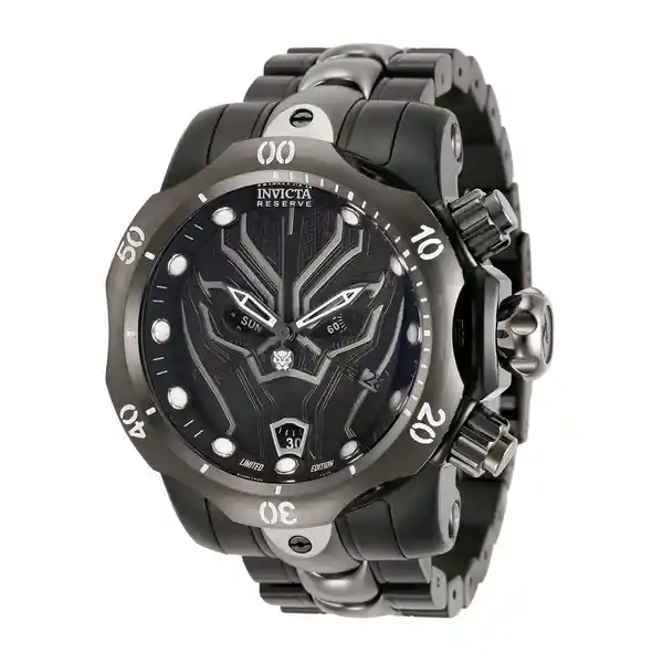 Hombre Material: Acero Inoxidable Modelo: 32451 Color Pulso: Negro. Titanio Material P: Acero Inoxidable Colección: Marvel Tono Caja: Negro. Titanio Material Caja: Acero Inoxidable Tablero: Negro. Plata. Bronce Cristal: Flame Fusion Ancho Banda: 26 Largo: 210 Resistecia al Agua: 1000 Size Caja: 53.7 Tipo de Reloj: Quartz