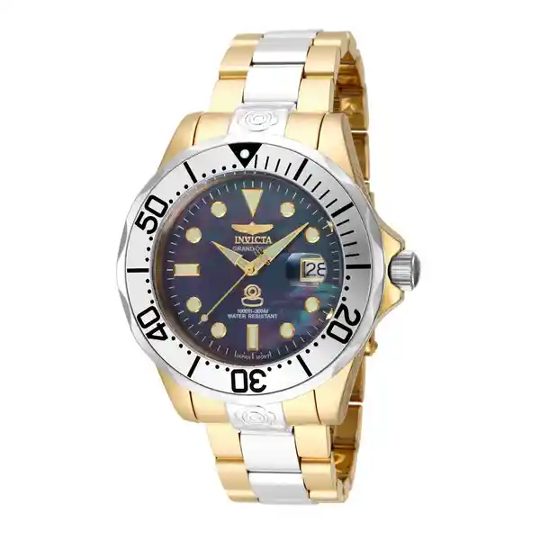 Hombre Material: Acero Inoxidable Modelo: 16034 Color Pulso: Acero. Oro Material P: Acero Inoxidable Colección: Pro Diver Tono Caja: Oro. Acero Material Caja: Acero Inoxidable Tablero: Negro Cristal: Mineral Ancho Banda: 22 Largo: 215 Resistecia al Agua: 300 Size Caja: 47 Tipo de Reloj: Automatic