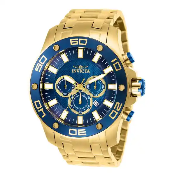 Hombre Material: Acero Inoxidable Modelo: 26078 Color Pulso: Oro Material P: Acero Inoxidable Colección: Pro Diver Tono Caja: Oro Material Caja: Acero Inoxidable Tablero: Azul Cristal: Flame Fusion Ancho Banda: 30 Largo: 196 Resistecia al Agua: 100M Size Caja: 50 Tipo de Reloj: Cuarzo