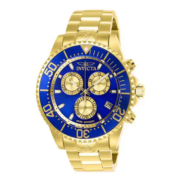 Hombre Material: Acero Inoxidable Modelo: 26849 Color Pulso: Oro Material P: Acero Inoxidable Colección: Pro Diver Tono Caja: Oro Material Caja: Acero Inoxidable Tablero: Azul Dorado Cristal: Mineral Ancho Banda: 22 Largo: 210 Resistecia al Agua: 300 Size Caja: 47 Tipo de Reloj: Cuarzo