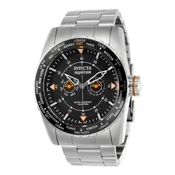 Hombre Material: Acero Inoxidable Modelo: 22984 Color Pulso: Acero Material P: Acero Inoxidable Colección: Aviator Tono Caja: Acero Inoxidable Material Caja: Acero Inoxidable Tablero: Gris Oscuro Cristal: Flame Fusion Ancho Banda: 28 Largo: 215 Resistecia al Agua: 100 Size Caja: 48 Tipo de Reloj: Quartz