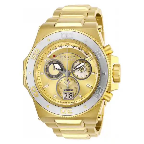Reloj Invicta 26053J Akula Para Hombre, Tamaño de la Caja 55.7 (mm) de Acero Inoxidable, Tamaño Del Pulso 210 (mm) de Acero Inoxidable, Color Dorado, Pulso de 210 (mm), Resistencia al Agua Hasta 300 (Metros)