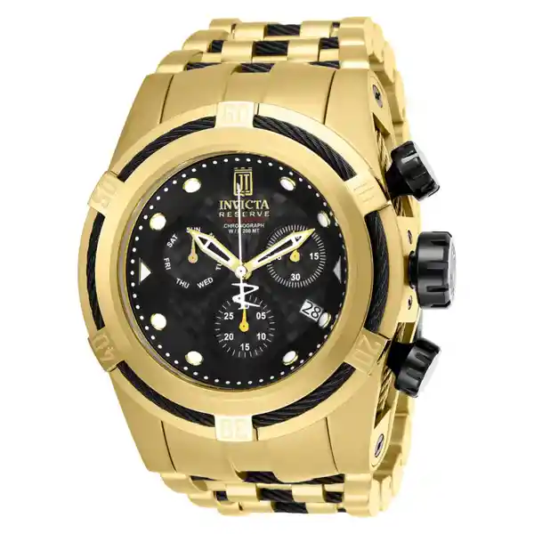 Reloj Invicta 14432J Jason Taylor Para Hombre, Tamaño de la Caja 53 (mm) de Acero Inoxidable, Tamaño Del Pulso 187 (mm) de Acero Inoxidable, Color Dorado, Negro, Pulso de 187 (mm), Resistencia al Agua Hasta 200 (Metros)