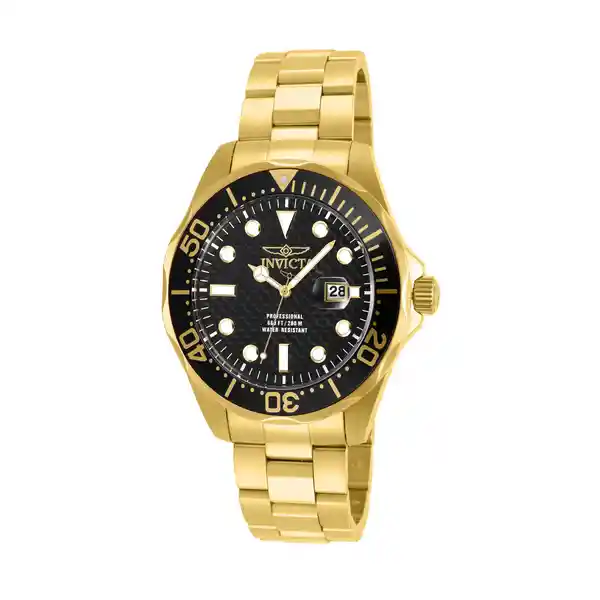 Reloj Invicta 14356 Pro Diver Para Hombre Medida de la Caja 47 (mm) de Acero Inoxidable Medida Del Pulso 215 (mm) de Acero Inoxidable Color Oro Pulso de 215 (mm) Resistencia al Agua Hasta 200 (Metros).