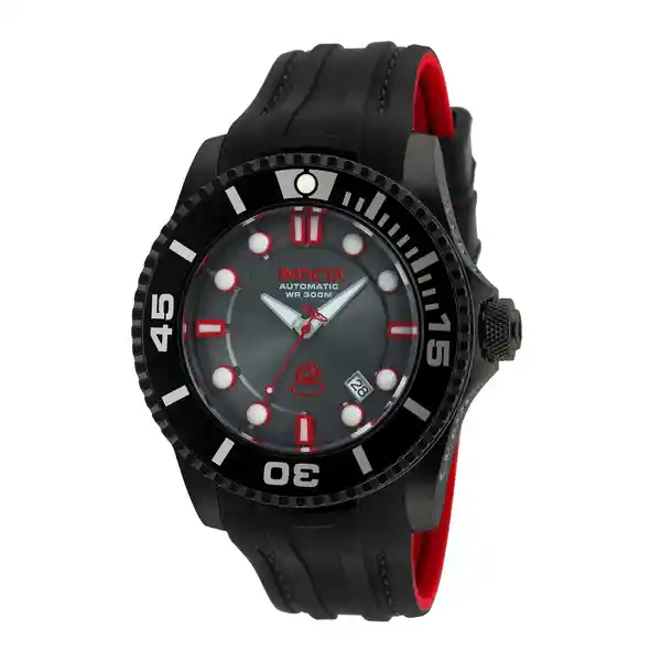 Hombre Material: Silicona Modelo: 20205 Color Pulso: Negro Rojo Material P: Silicona Colección: Pro Diver Tono Caja: Negro Material Caja: Acero Inoxidable Tablero: Carbón Cristal: Flame Fusion Ancho Banda: 26 Largo: 225 Resistecia al Agua: 300 Size Caja: 47 Tipo de Reloj: Automático