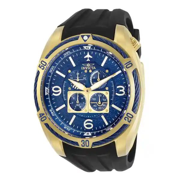 Hombre Material: Silicona. Poliuretano Modelo: 30487 Color Pulso: Negro Material P: Silicona. Poliuretano Colección: Aviator Tono Caja: Oro Material Caja: Acero Inoxidable Tablero: Azul Cristal: Flame Fusion Ancho Banda: 32 Largo: 200 Resistecia al Agua: 100 Size Caja: 50 Tipo de Reloj: Quartz