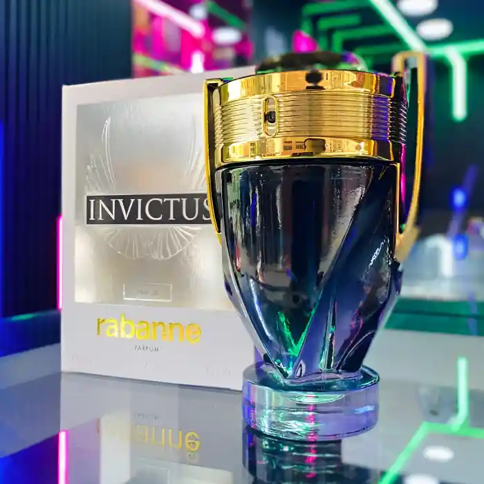 Perfume "INVICTUS PARFUM RABANNE" 100% garantizado. Cada perfume viene con el empaque y caja como se muestra en la foto. 1.1 Invictus Parfum de Rabanne es una fragancia de la familia olfativa Aromática Acuática para Hombres. Las Notas de Salida son Notas marinas, lavanda y pimienta rosa las Notas de Corazón son Jabón, hojas de violeta y mirto las Notas de Fondo son almizcle, cachemira y sándalo.