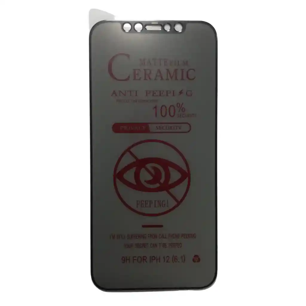 CACHARRERIA2020 EXCELENTE OPCIÓN PROTECCION DEL VISOR FILM IRROMPIBLE Incluye: 1 Protector cerámico no vidrio antiespía full cover compatible con iphone 12 / 12 pro 1 pañitos dos en uno Características : Incluye: 1 protector antiespía full cover 1 juego de pañitos 2 en 1 descripción: Una mezcla indestructible de PMMA y PET. Fuerte elasticidad y estructura anticolisión que mantiene una durabilidad extrema. La superficie tiene una dureza de 9H, tres veces más fuerte que una película protectora de pantalla normal. Recubrimiento OLEOFÓBICO: tiene un recubrimiento OLEOFÓBICO que evita huellas dactilares y otros contaminantes. El protector de pantalla es pegamento total, que tiene un fuerte adhesivo que facilita la instalación y sujeta la película firmemente para no afectar la sensibilidad de la pantalla táctil. Destapar bajo video referenciando número de bolsa y guía en caso de cualquier reclamación, no se aceptan reclamaciones en productos usados por parte de cliente o instalados. celular