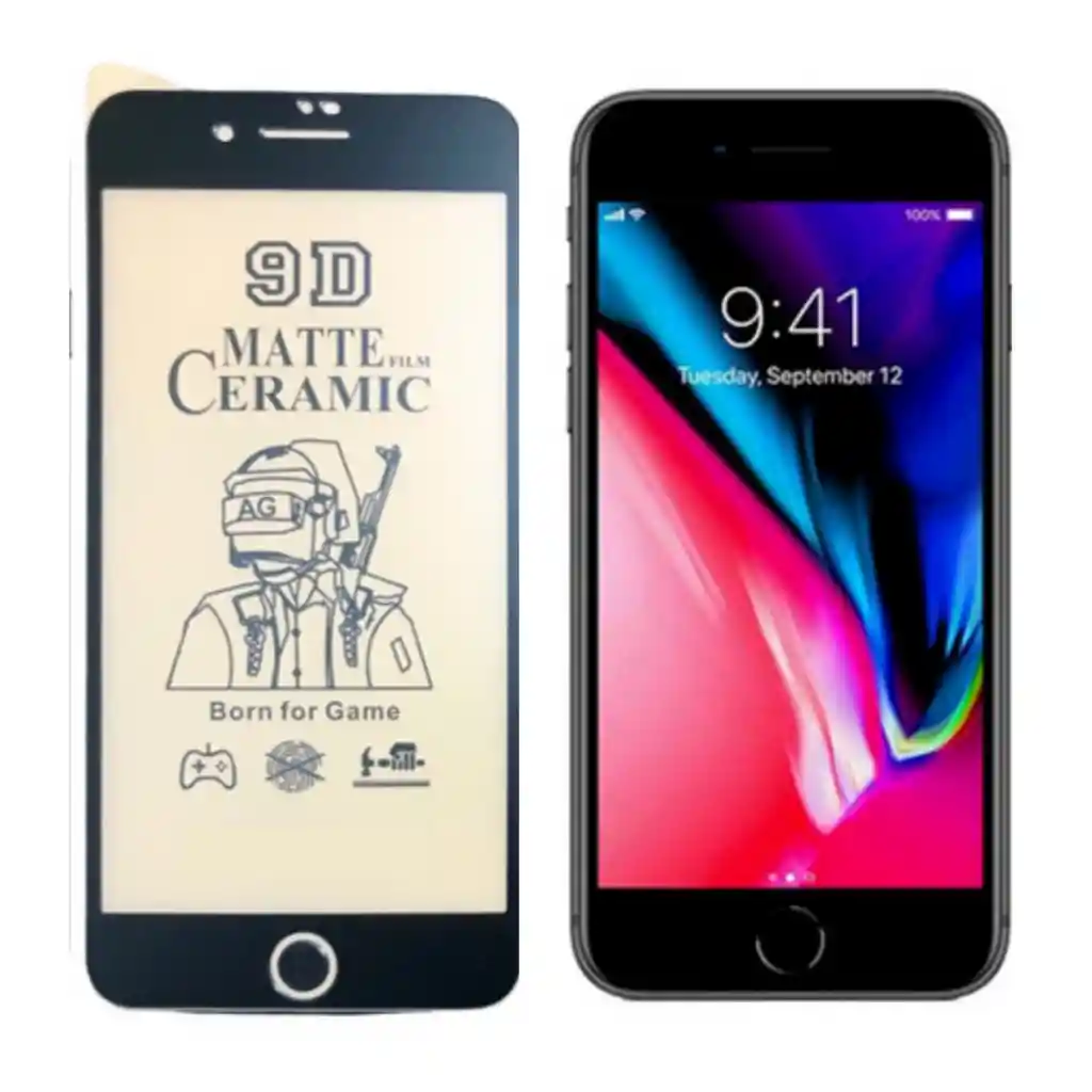 CACHARRERIA2020 EXCELENTE CALIDAD CONTIENE: 1 Protector No Vidrio irrompible matte cerámico Borde Negro compatible con iphone 7 plus / 8 plus Características protector matte ceramic: Una mezcla de PMMA y PET. La fuerte elasticidad y la estructura anticolisión mantienen una durabilidad extrema. Tres veces más fuerte que una película protectora de pantalla normal. Revestimiento OLEOFÓBICO: Premium tiene un recubrimiento OLEOFÓBICO que evita huellas dactilares y otros contaminantes. El protector de pantalla tiene pegamento completo, que tiene un adhesivo fuerte que facilita la instalación y sujeta la película firmemente para no afectar la sensibilidad de la pantalla táctil. Fácil instalación. No afecta el táctil y protege firme su visor , como no es vidrio no se rompe. Recordar que esto no es un repuesto ,solo un protector de pantalla celular