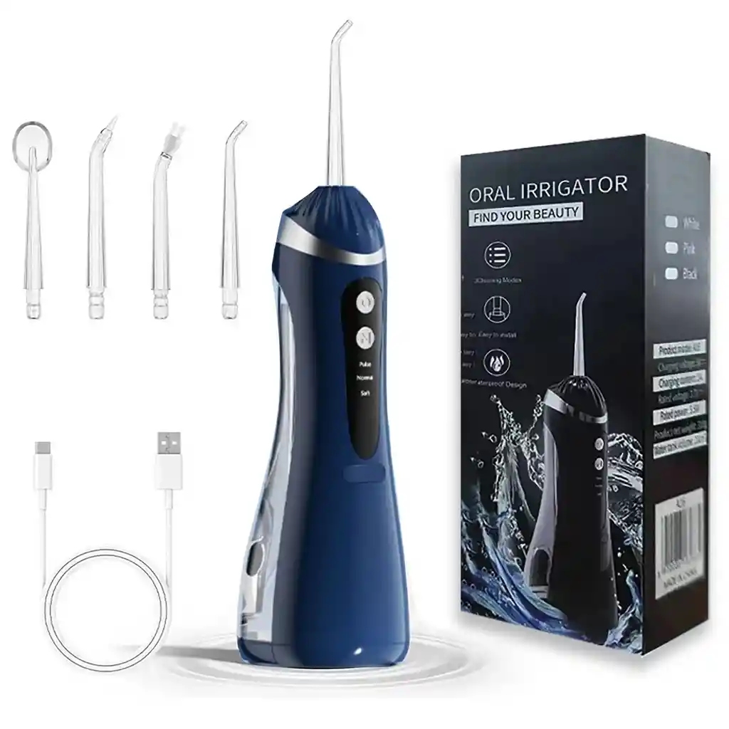 El irrigador dental portátil recargable es un dispositivo de higiene bucal diseñado para limpiar profundamente entre los dientes y las encías mediante un potente chorro de agua a presión que ayuda a eliminar hasta el 99.9 % de la placa y restos de alimentos, mejorando la salud bucal y previniendo problemas como caries, gingivitis y mal aliento. Este modelo cuenta con 3 modos de limpieza (pulso, normal y suave) para adaptarse a diferentes necesidades, desde limpieza profunda hasta cuidado para encías sensibles, además de 4 boquillas intercambiables con rotación de 360° ideales para limpieza diaria, ortodoncia, bolsas periodontales y raspado de lengua. Incorpora batería recargable de 1200 mAh con carga USB tipo C, tanque de agua de 200 ml para mayor autonomía durante el uso y protección impermeable IPX7, lo que permite lavarlo fácilmente e incluso usarlo con seguridad en el baño o la ducha. Gracias a su diseño portátil y ergonómico, es perfecto para usar en casa, viajes o después de las comidas, ofreciendo una limpieza dental profesional de forma práctica y cómoda. Contenido del paquete: 1 Irrigador dental portátil 4 Boquillas intercambiables 1 Cable de carga USB tipo C 1 Manual de usuario Ficha Técnica: Dimensiones aproximadas: 28.5 cm x 7 cm x 8 cm Capacidad del tanque de agua: 200 ml de capacidad para limpieza completa sin recargar frecuentemente. Presión del agua: 30 – 120 PSI de presión ajustable para limpieza profunda. Frecuencia de pulsos: Aproximadamente 1200 – 1700 pulsos por minuto para eliminar placa y restos de comida. Modos de limpieza: Modo Pulso: masaje de encías Modo Normal: limpieza profunda Modo Suave: para encías sensibles Número de boquillas: 4 boquillas intercambiables con rotación de 360° Capacidad de la batería: 1200 mAh batería recargable de larga duración. Tipo de carga: USB Tipo C Voltaje de funcionamiento: 3.7 V batería de litio recargable. Autonomía aproximada: Hasta 2 a 4 semanas de uso dependiendo de la frecuencia. Nivel de protección: IPX7 resistente al agua (apto para usar en el baño o ducha). Material: Plástico ABS de alta resistencia y componentes electrónicos sellados Para defectos de fábrica o retractos: Por favor revise el producto apenas lo reciba y antes de usarlo. No aplican ley de retracto o defectos de fábrica luego de usar el producto. Se manejan máximo 5 días para reportar defectos de fábrica (por ejemplo, producto funciona mal, piezas faltantes, rotas, etc). Para hacer efectiva la devolución el producto debe devolverse con el empaque original, el cual debe estar en buen estado, incluir todos los documentos y las partes completas y sin daños.