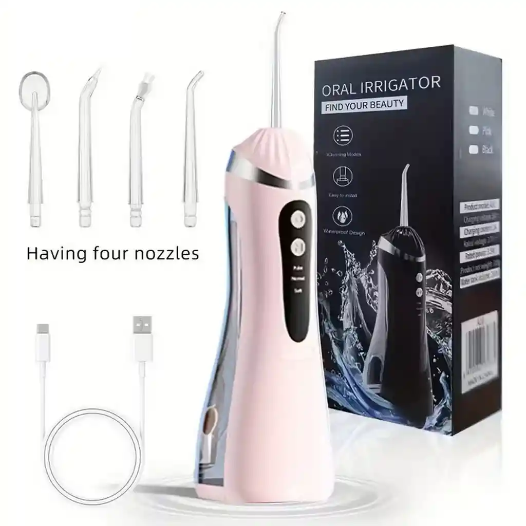 El irrigador dental portátil recargable es un dispositivo de higiene bucal diseñado para limpiar profundamente entre los dientes y las encías mediante un potente chorro de agua a presión que ayuda a eliminar hasta el 99.9 % de la placa y restos de alimentos, mejorando la salud bucal y previniendo problemas como caries, gingivitis y mal aliento. Este modelo cuenta con 3 modos de limpieza (pulso, normal y suave) para adaptarse a diferentes necesidades, desde limpieza profunda hasta cuidado para encías sensibles, además de 4 boquillas intercambiables con rotación de 360° ideales para limpieza diaria, ortodoncia, bolsas periodontales y raspado de lengua. Incorpora batería recargable de 1200 mAh con carga USB tipo C, tanque de agua de 200 ml para mayor autonomía durante el uso y protección impermeable IPX7, lo que permite lavarlo fácilmente e incluso usarlo con seguridad en el baño o la ducha. Gracias a su diseño portátil y ergonómico, es perfecto para usar en casa, viajes o después de las comidas, ofreciendo una limpieza dental profesional de forma práctica y cómoda. Contenido del paquete: 1 Irrigador dental portátil 4 Boquillas intercambiables 1 Cable de carga USB tipo C 1 Manual de usuario Ficha Técnica: Dimensiones aproximadas: 28.5 cm x 7 cm x 8 cm Capacidad del tanque de agua: 200 ml de capacidad para limpieza completa sin recargar frecuentemente. Presión del agua: 30 – 120 PSI de presión ajustable para limpieza profunda. Frecuencia de pulsos: Aproximadamente 1200 – 1700 pulsos por minuto para eliminar placa y restos de comida. Modos de limpieza: Modo Pulso: masaje de encías Modo Normal: limpieza profunda Modo Suave: para encías sensibles Número de boquillas: 4 boquillas intercambiables con rotación de 360° Capacidad de la batería: 1200 mAh batería recargable de larga duración. Tipo de carga: USB Tipo C Voltaje de funcionamiento: 3.7 V batería de litio recargable. Autonomía aproximada: Hasta 2 a 4 semanas de uso dependiendo de la frecuencia. Nivel de protección: IPX7 resistente al agua (apto para usar en el baño o ducha). Material: Plástico ABS de alta resistencia y componentes electrónicos sellados Para defectos de fábrica o retractos: Por favor revise el producto apenas lo reciba y antes de usarlo. No aplican ley de retracto o defectos de fábrica luego de usar el producto. Se manejan máximo 5 días para reportar defectos de fábrica (por ejemplo, producto funciona mal, piezas faltantes, rotas, etc). Para hacer efectiva la devolución el producto debe devolverse con el empaque original, el cual debe estar en buen estado, incluir todos los documentos y las partes completas y sin daños.