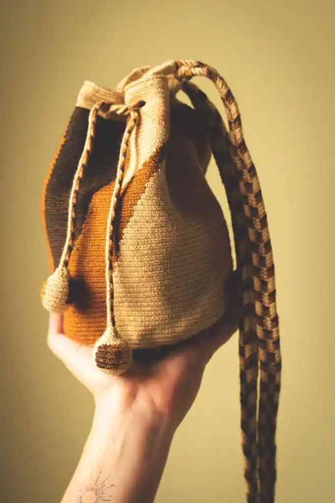 Mini bag tejida en una hebra 100% a mano por artesanas Wayuu en el norte de la Guajira. El patrón es un símbolo de la cultura Indígena Wayuu y un buen ejemplo de su estilo de vida étnico. Idea para llevar tu celular y accesorios personales como llaves y billetera en cualquier viaje en el que quieras sentirte cómoda y ligera.