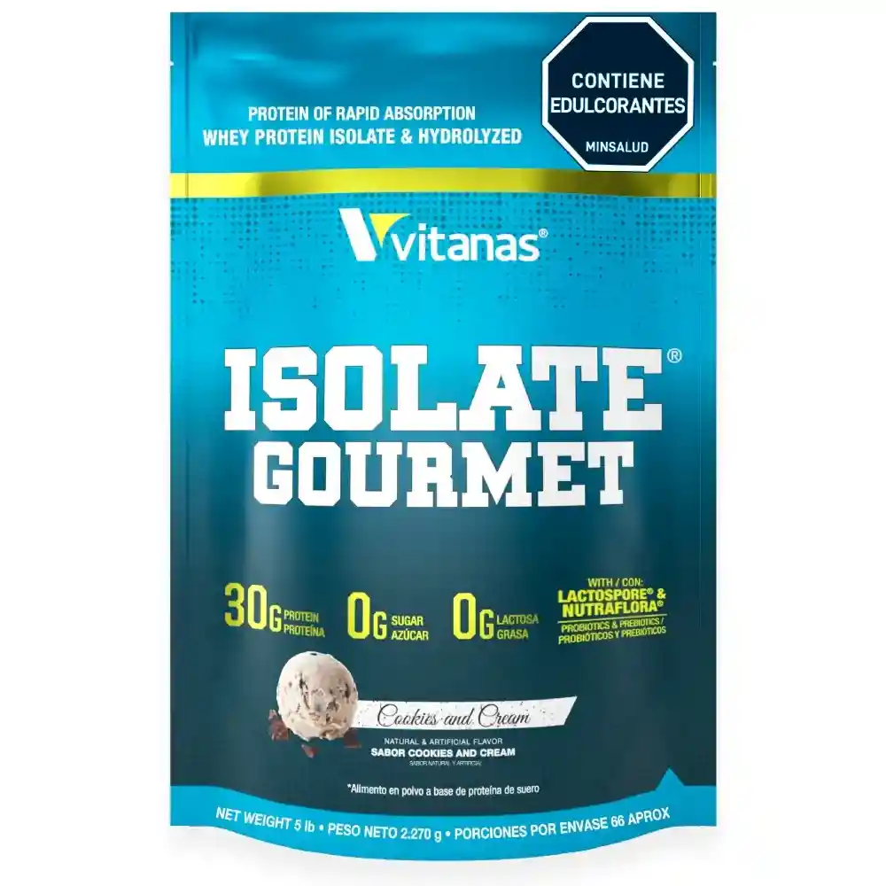 Isolate Gourmet Vitanas Proteina baja en calorias la cual puedes usar para construir musculo magro o incluso para mantener tu masa muscular cuando estas en periodo de perdida de grasa corporal. 30 gramos de proteina por servicio 0 grasa 0 azúcar 0 lactosa Con probióticos y nutraflora