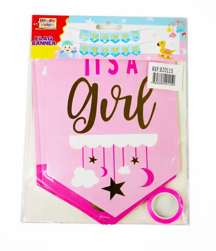 Guirnalda its a Girl 12 banderines perfecto para revelacion de genero, baby shower color Rosado disponible para envio inmediato