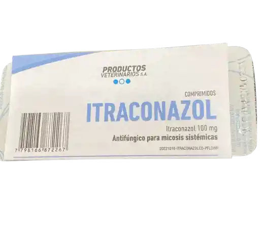 COMPOSICIÓN: Cada comprimido contiene Itraconazol 100 mg. · INDICACIONES: Antifúngico para micosis sistémicas y dermatofitosis en perros y gatos VENTA X 1 TABLETA