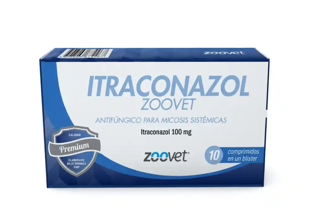 Antifúngico de uso veterinario a base de itraconazol, indicado para el tratamiento de infecciones causadas por hongos en perros y gatos, como dermatofitosis (tiña), infecciones cutáneas y sistémicas. Actúa inhibiendo el crecimiento de los hongos, siendo especialmente útil en tratamientos prolongados bajo supervisión veterinaria.