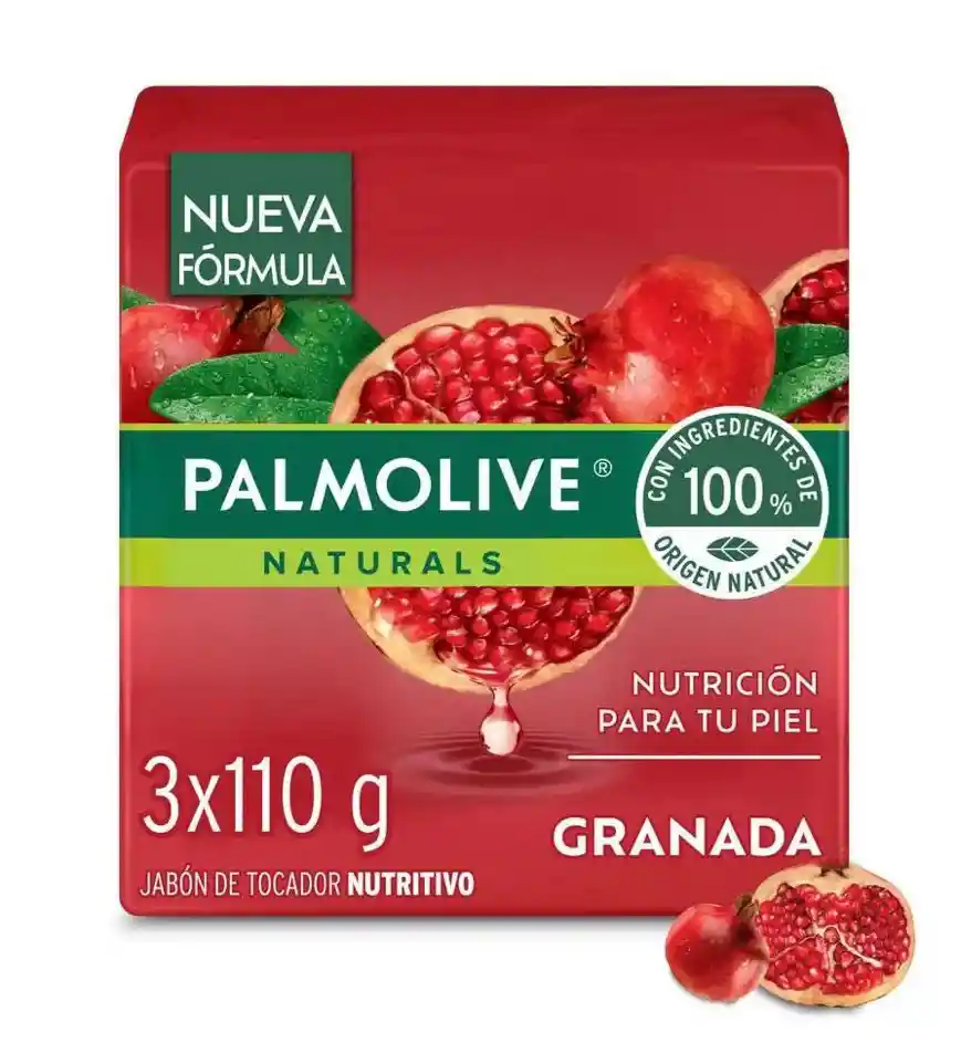 El jabón corporal Palmolive Natural Granada es una opción perfecta para quienes buscan una limpieza que no solo cuide la piel, sino que también la revitalice con cada uso. Su fórmula está enriquecida con extracto natural de granada, conocido por sus propiedades antioxidantes, ayudando a renovar la apariencia de la piel y dejándola con un aspecto más saludable y luminoso . Además, su composición incluye humectantes que contribuyen a mantener la piel suave y bien cuidada. Al usarlo, se percibe una espuma cremosa que limpia profundamente mientras envuelve la piel en una fragancia dulce y fresca, inspirada en la jugosa granada. Esta combinación no solo deja la piel limpia, sino también con una sensación de frescura y suavidad que se mantiene durante el día, convirtiendo cada baño en un momento agradable y revitalizante . Su presentación de 330 g es ideal para el uso diario, ofreciendo un excelente rendimiento para toda la familia. Es un producto práctico para tener siempre en casa, asegurando una limpieza efectiva con un toque de cuidado natural en cada uso. Si buscas un jabón que combine limpieza, suavidad y una fragancia deliciosa que realmente se disfrute, el Palmolive Natural Granada es una elección que vale la pena. Su mezcla de ingredientes naturales y su aroma envolvente lo convierten en un aliado perfecto para el cuidado diario de tu piel.