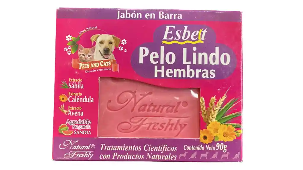 El Jabón en barra Pelo Lindo Hembras está desarrollado para la limpieza del pelaje y la piel de las mascotas. Contiene extracto de Sábila, caléndula y avena.