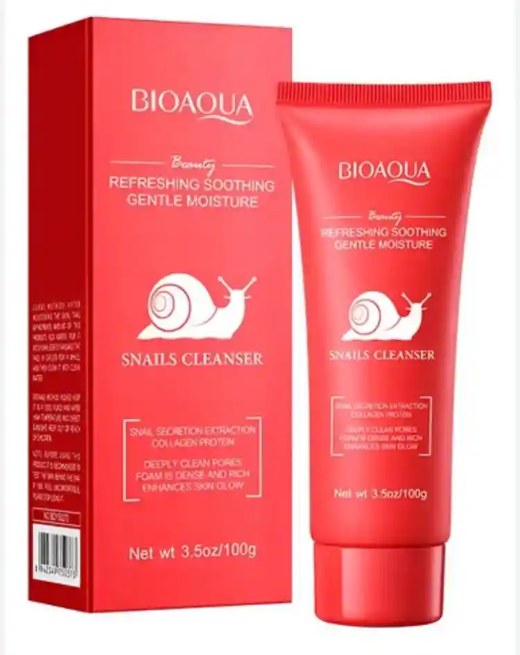 Marca: Bioaqua Contenido: 100g (3.5oz) Características principales: Refrescante, calmante e hidratante suave. Ingredientes clave: Extracto de secreción de caracol y proteína de colágeno. Beneficios: Limpia profundamente los poros, la espuma es densa y rica, y mejora el brillo de la piel.